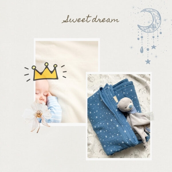 Un cocon de douceur qui grandit avec votre enfant La couverture Sweet Dream est bien plus qu’une simple couverture : avec sa taille généreuse (120×120 cm) et sa triple épaisseur en gaze de coton Oeko-Tex, elle accompagnera votre bébé dès ses premiers jours et jusqu’à ses premières années d’école. Parfaite pour les siestes, les balades en poussette ou les moments de réconfort, elle devient vite un indispensable au quotidien. Durable, douce et polyvalente, elle évolue avec votre enfant et reste son alliée préférée pendant des années
